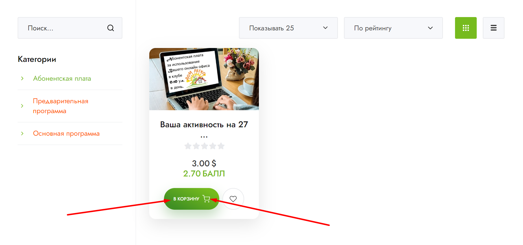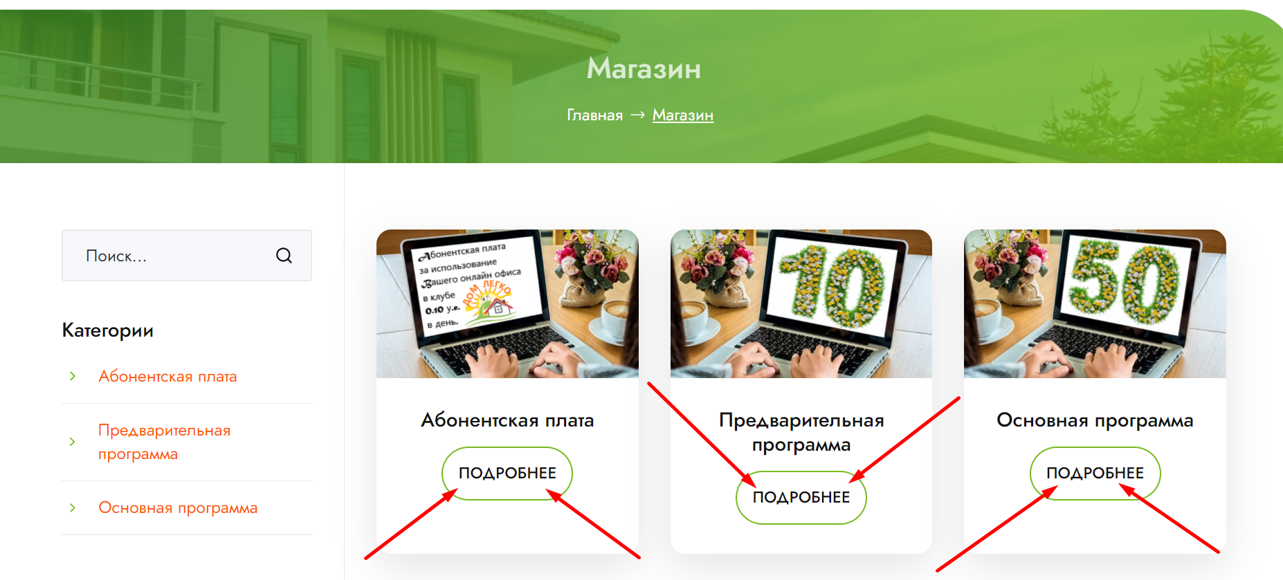 Когда Вы зайдете в магазин для оплаты годовой активности, Вам необходимо в магазине выбрать каталог “Абонентская плата”
