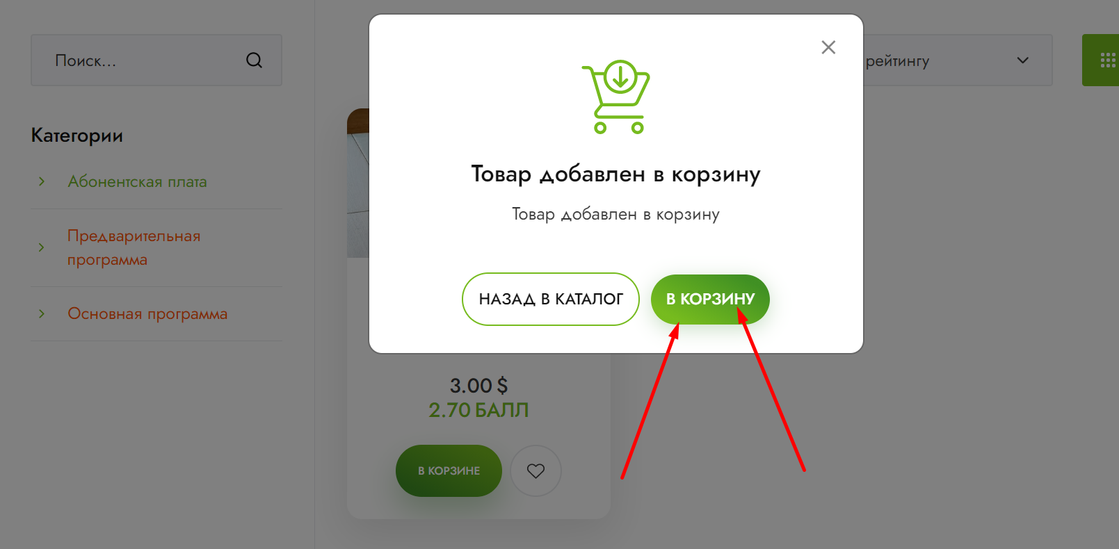 И, перейдя в этот каталог, нажать на кнопку “в корзину”